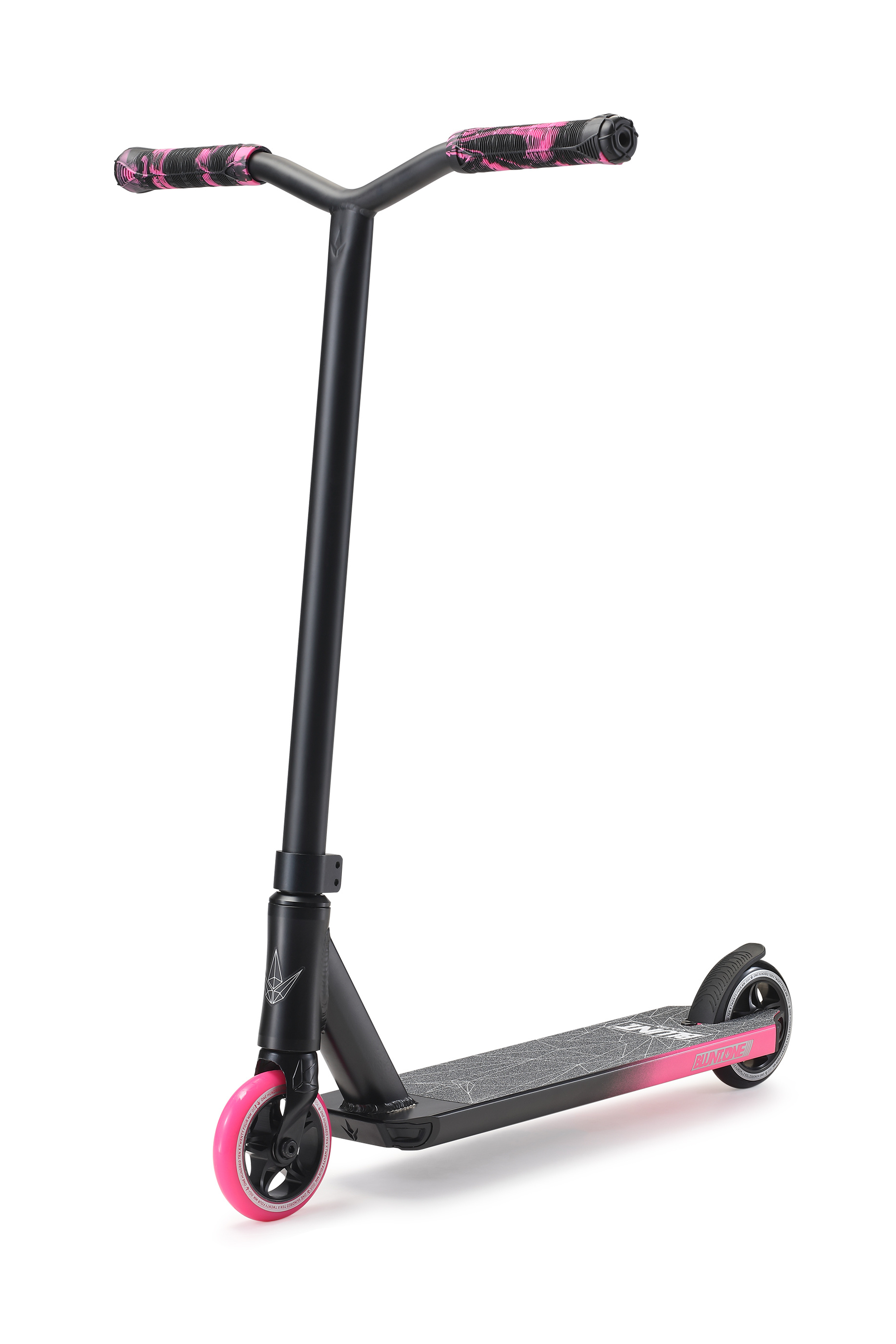 Vynikajúci freestylový skúter pre začiatočníkov. Skvelé rozmery, skvelá cena! Kolobežka má 110 mm kolesá s hliníkovým stredom, oceľovú vidlicu bez závitu s IHC compr. systém. Skvelé pre skatepark.