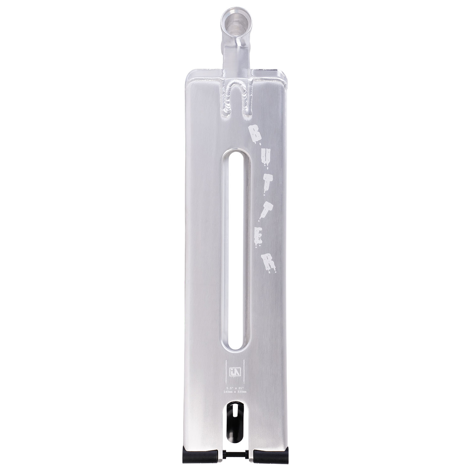 Doska Butter od spoločnosti Urban Artt prekvapila svojím jednoduchým, ale dokonalým vzhľadom. Pri výrobe dosky sa dbalo na pevnosť, takže všetky zvarydokonale zhotovené. Doska sa dodáva vo veľkosti 21" x 5.5"/140 x 533 mm, čo je skvelé pre street aj skatepark. Hmotnosť dosky je len 1,95 kg.uhol krku dosky je 83°. Na dosku je možné umiestniť kolieska s maximálnou veľkosťou 125 x 30 mm. V balení dostanete plastovú flexi blatník brzdu aj mini blatník, je na vás, čo si vyberiete.