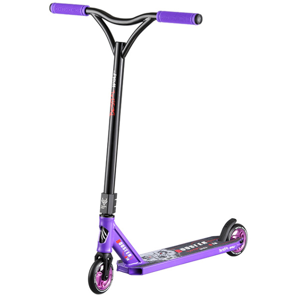 Hlavnou novinkou freestylovej kolobežky Booster B18 je hliníková jednodielna vidlica. Vidlica je odolnejšia a ľahšia. Super 110 mm kolesá s hliníkovým stredom sú ešte rýchlejšie. Pevné oceľové riadidlá vyrobené z CrMo 4130 v tvare Y sú odolnejšie ako riadidlá konkurenčných kolobežiek. Miernou výhodou riadidiel je, že zárez je skrytý v objímke, takže riadidlá sú odolnejšie a je menšia pravdepodobnosť, že v záreze prasknú.