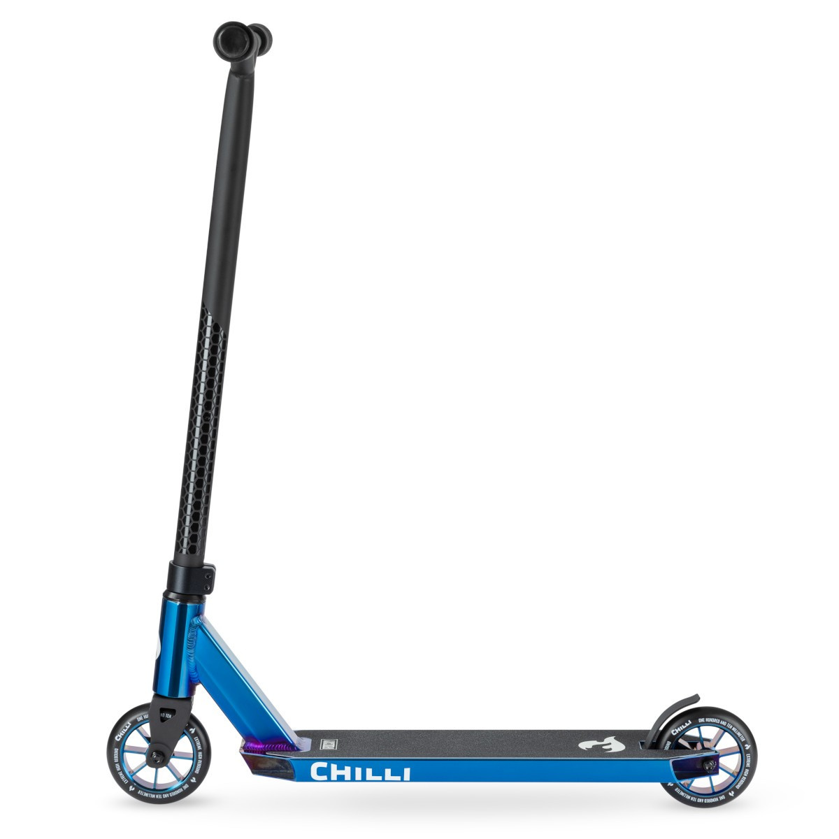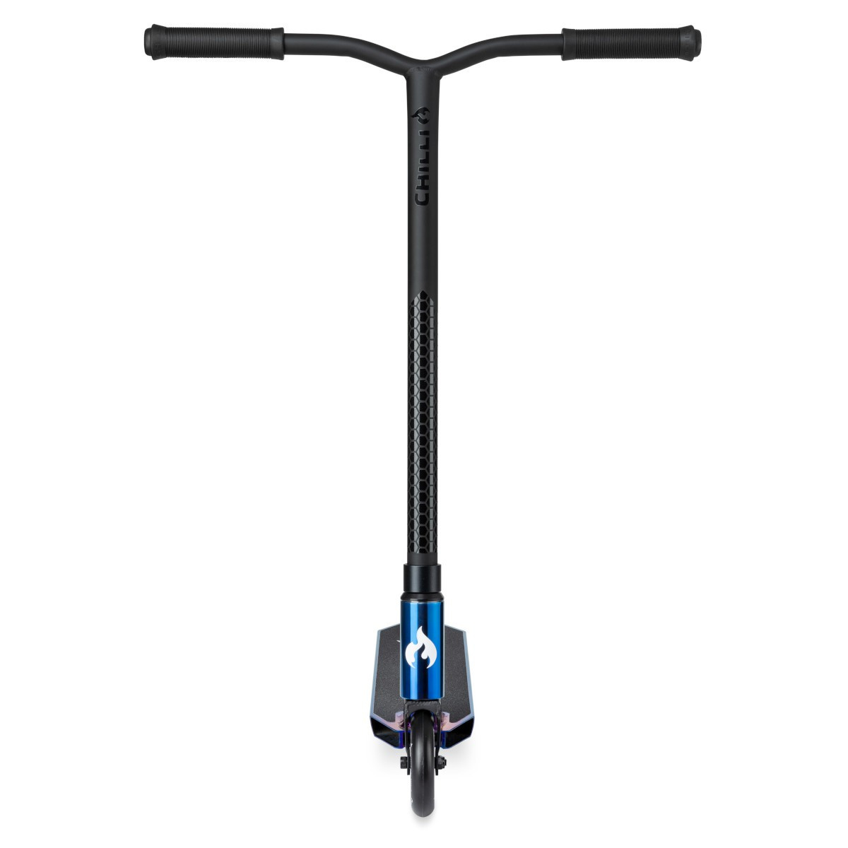 Chilli Rocky blue neochrome je skvelá voľba pre všetkých, ktorí chcú začať s jazdou na freestyle kolobežke. Chilli Rocky spája odolnosť, výkon a štýl a preto je ideálny pre prvé triky aj každodennú zábavu v skateparku. Začínajúci jazdec alebo mierne pokročilý jazdec bude len ťažko hľadať v tejto cenovej kategórii lepšiu a štýlovejšiu kolobežku ako je práve kolobežka Chilli Rocky blue neochrome. Vďaka nízkej hmotnosti 3,56 kg a bezkonkurenčnému pomeru cena / kvalita patrí medzi najobľúbenejšie modely značky Chilli. Teraz prichádza v atraktívnom modrom neochrome dizajne, ktorý zaujme na prvý pohľad.