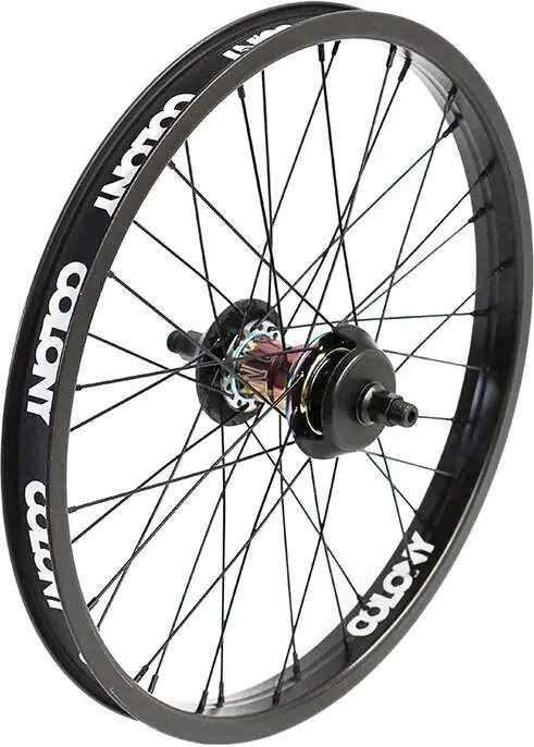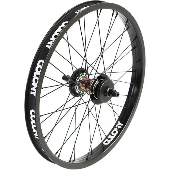Toto je 20" zadné koleso Colony Pintour pre freestylové bicykle BMX. Spoločnosť Colony navrhla 20" ráfik Pintour s dvojitými stenami pre jazdcov, ktorí potrebujú zadné koleso, ktoré zvládne vertikálne a bočné dopady pri trikoch a skokoch. Náboj freecoaster umožňuje jazdiť dozadu bez šliapania, takže je ideálny na zvládnutie fakie trikov. Uzavreté ložiská sú nenáročné na údržbu a odolné voči nečistotám, vďaka čomu je toto zadné koleso Colony ideálne na vonkajšie použitie.