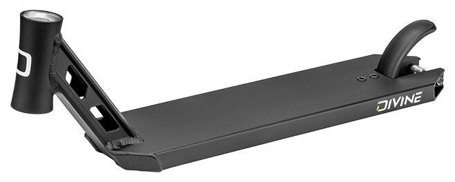 Vynikajúca, ľahká doska od českého výrobcu Divine. Odporúčame pre všetkých parkových jazdcov, ktorí chcú kvalitnú, ľahkú dosku so super rozmermi. Doska má plastovú brzdu so skrutkami pre imbus 6. To znamená, že hlavu skrutky ľahko neodstránite. Rozmery sú krásnych 495 mm na dĺžku a 127 mm na šírku. Krk dosky je zváraný, ľahký a má krásny dizajn. Doska je určená pre kolesá do 120 mm so šírkou 24 mm.