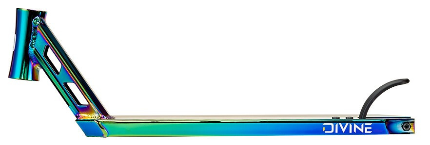 Vynikajúca, ľahká doska od českého výrobcu Divine. Odporúčame pre všetkých parkových jazdcov, ktorí chcú kvalitnú, ľahkú dosku so super rozmermi. Doska má plastovú brzdu so skrutkami pre imbus 6. To znamená, že hlavu skrutky ľahko neodstránite. Rozmery sú krásnych 495 mm na dĺžku a 127 mm na šírku. Krk dosky je zváraný, ľahký a má krásny dizajn. Doska je určená pre kolesá do 120 mm so šírkou 24 mm.