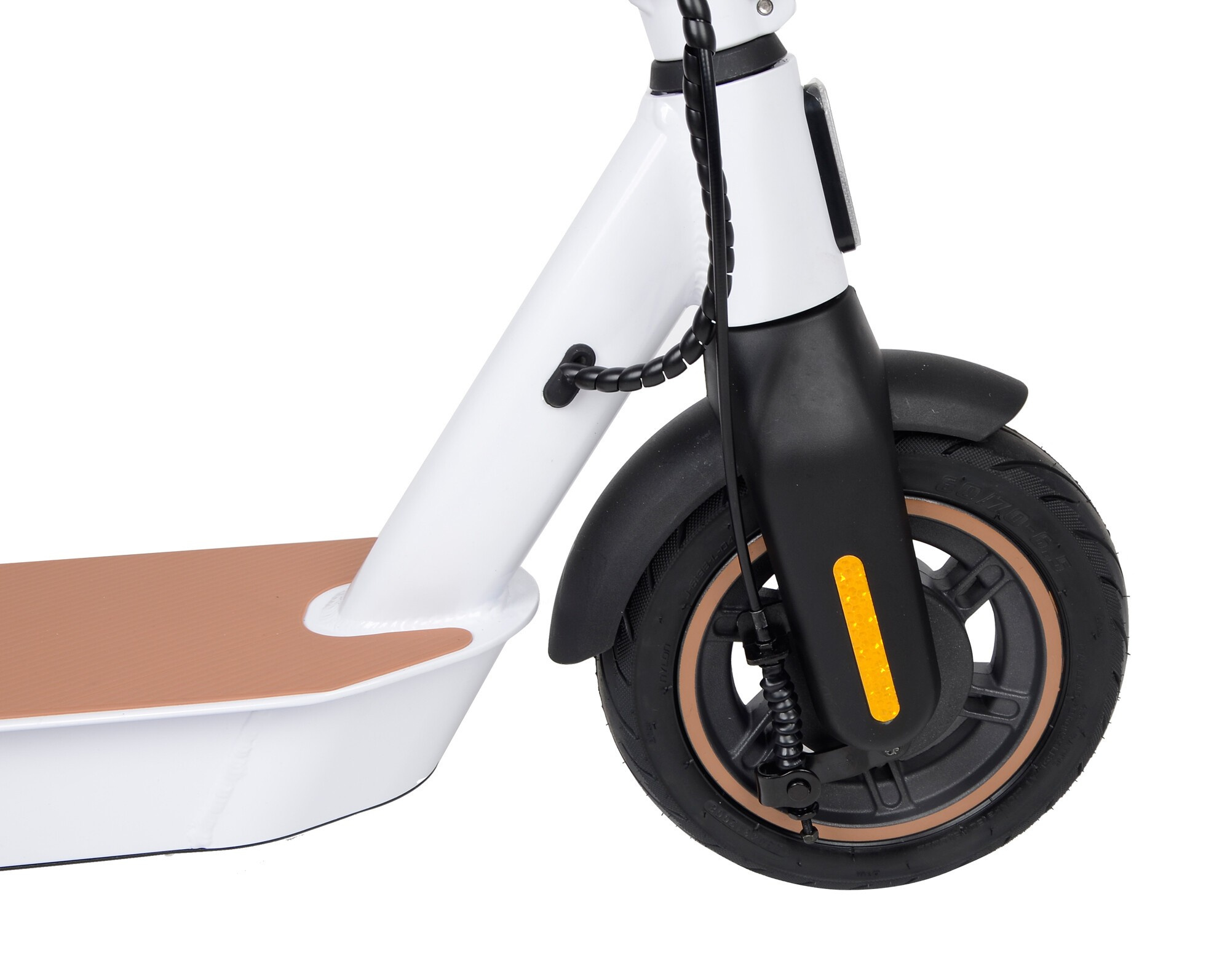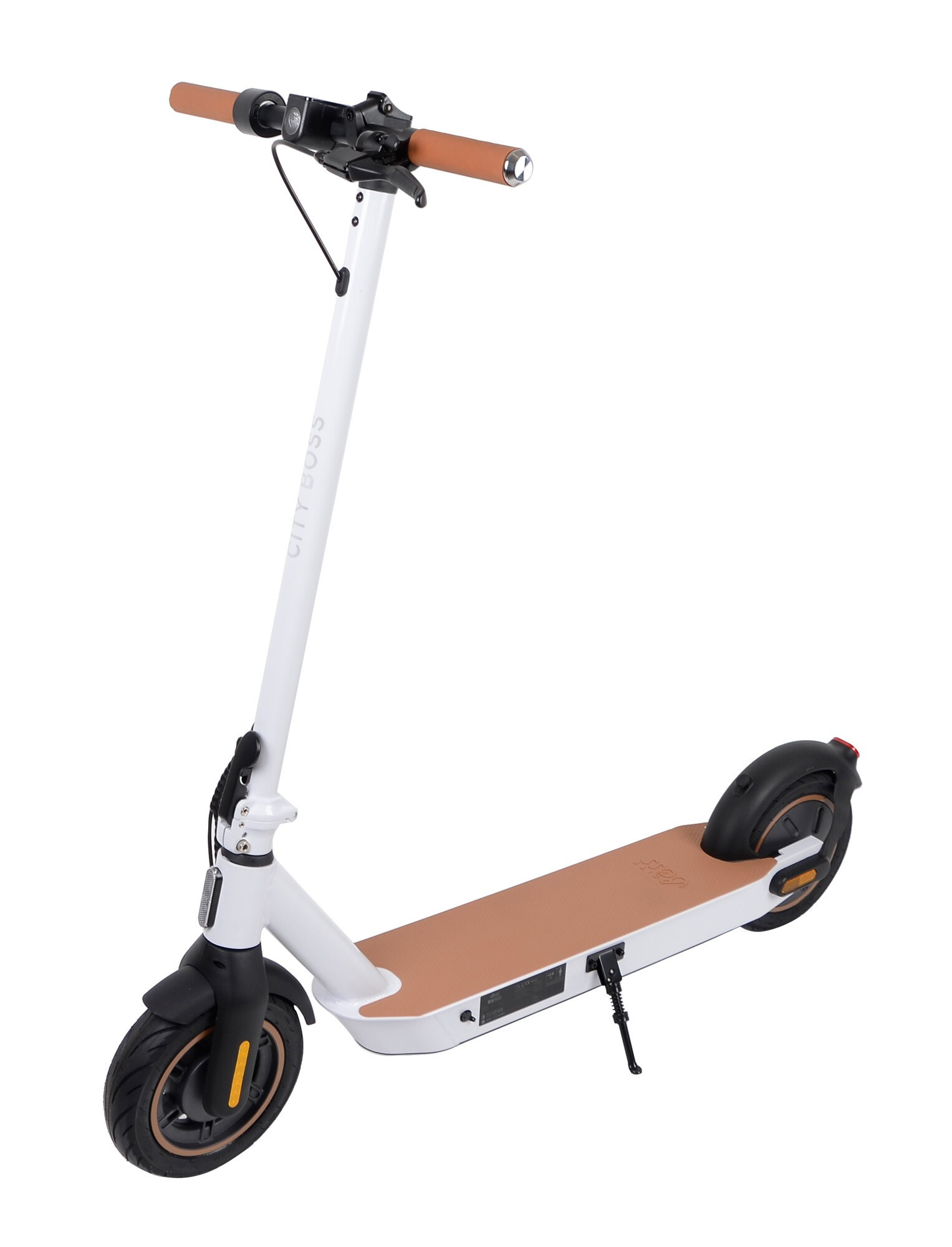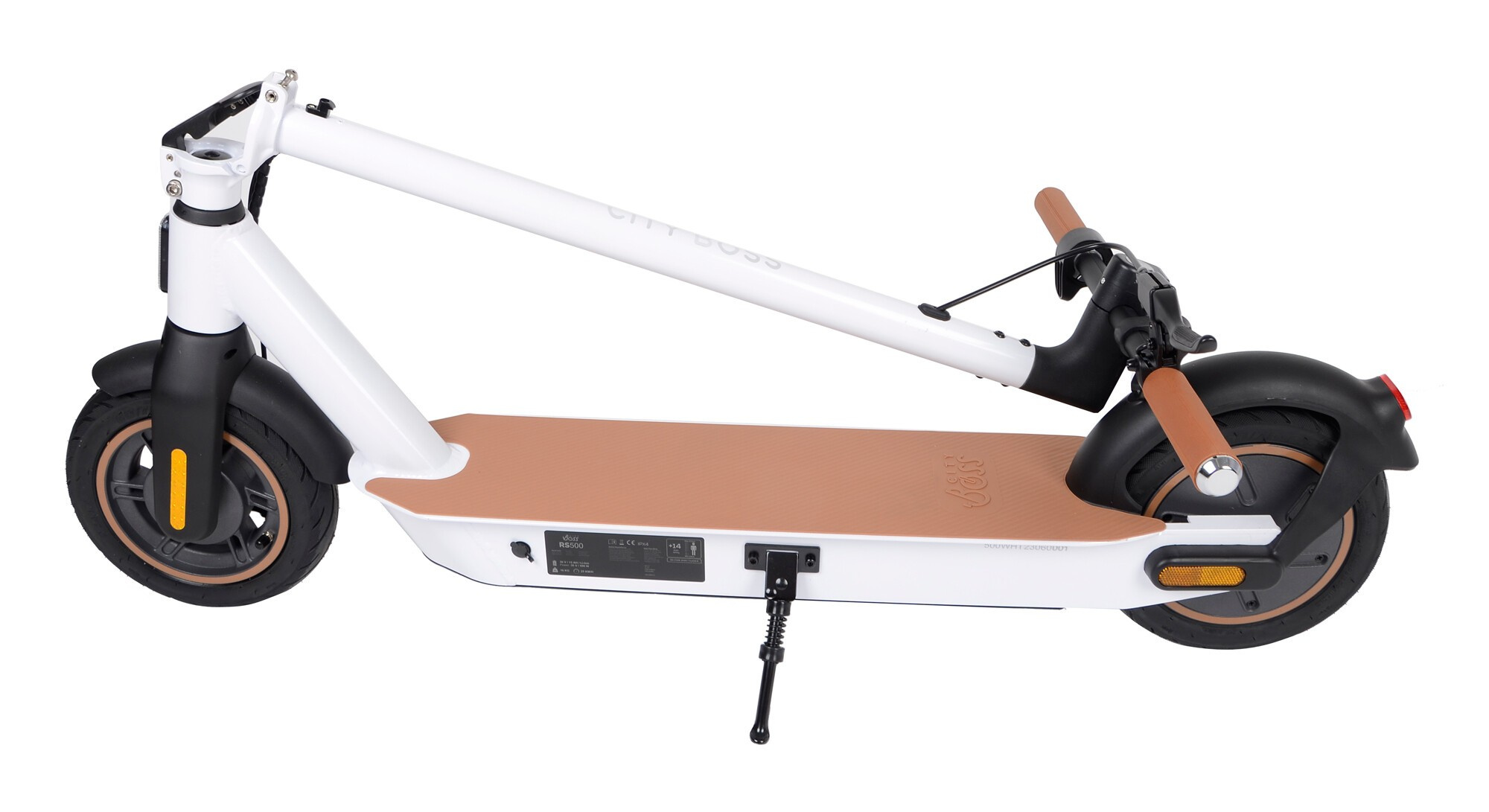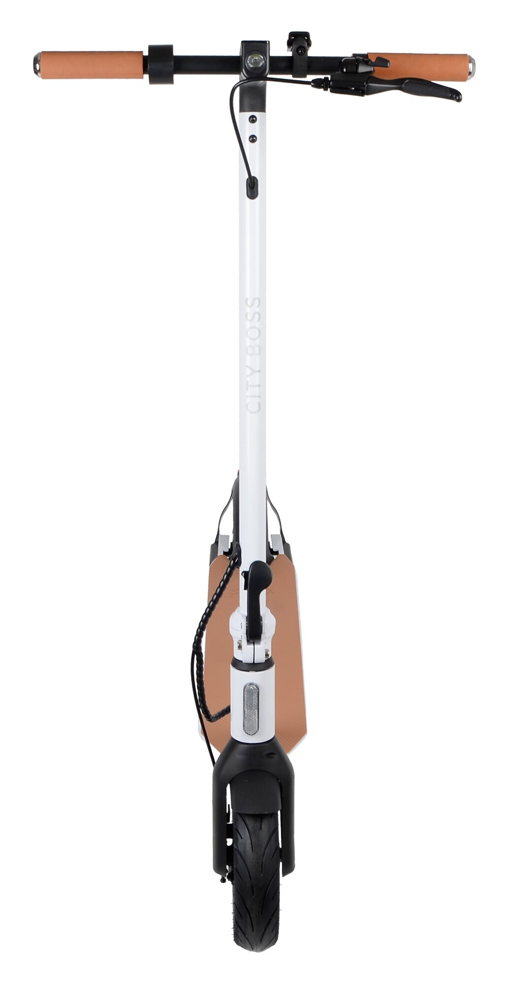 Elektrická kolobežka City Boss RS500 vás úsporne a pohodlne dopraví do práce, do školy, po meste či na výlet. Obe veľké 10" zosilnené nafukovacie pneumatiky znižujú možnosť defektu a významne tlmia vibrácie pri jazde po nerovných cestách.
