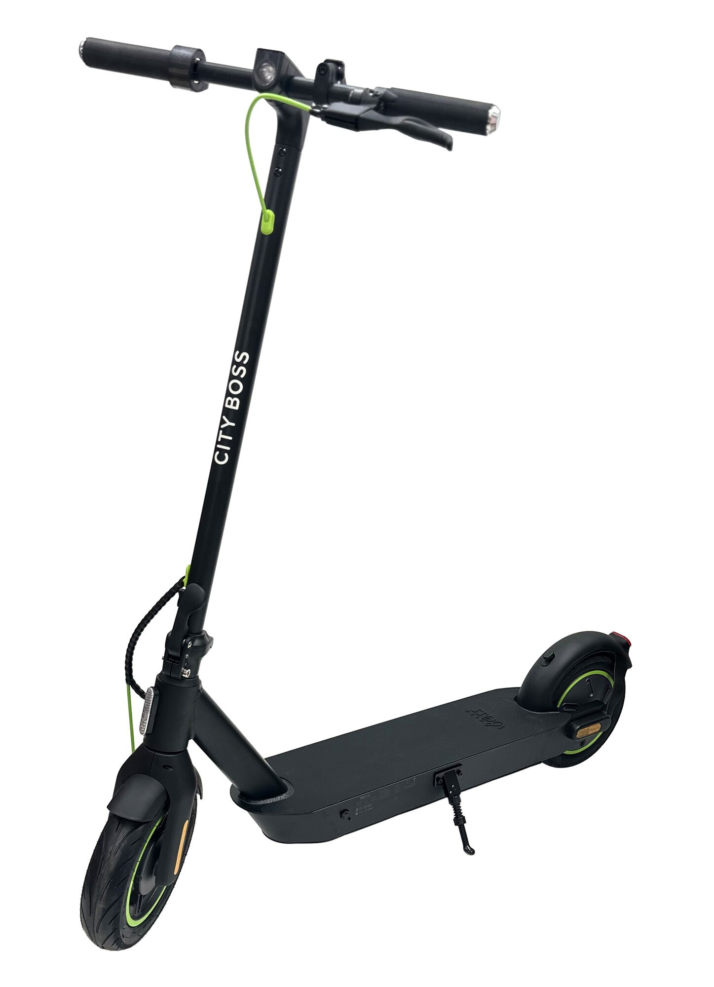 Elektrická kolobežka City Boss RS500 vás úsporne a pohodlne dopraví do práce, do školy, po meste či na výlet. Obe veľké 10" zosilnené nafukovacie pneumatiky znižujú možnosť defektu a významne tlmia vibrácie pri jazde po nerovných cestách.