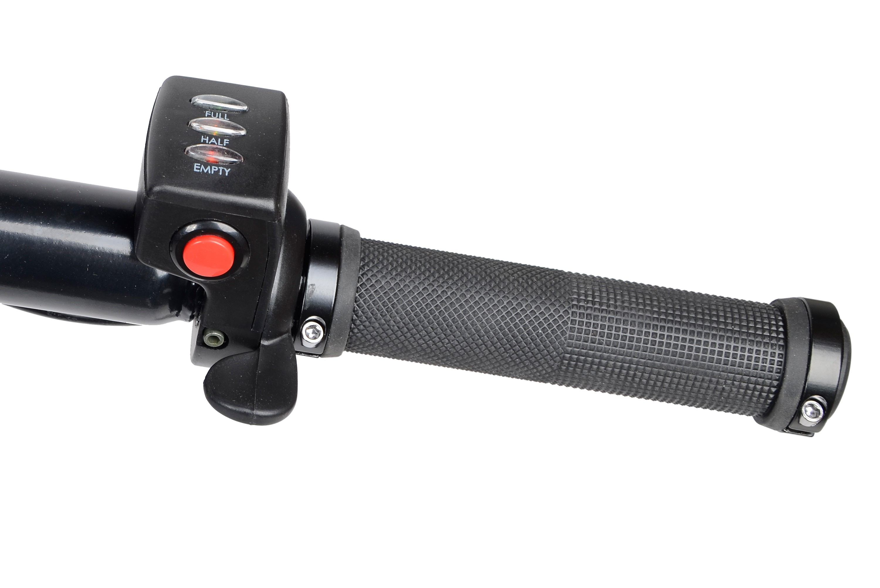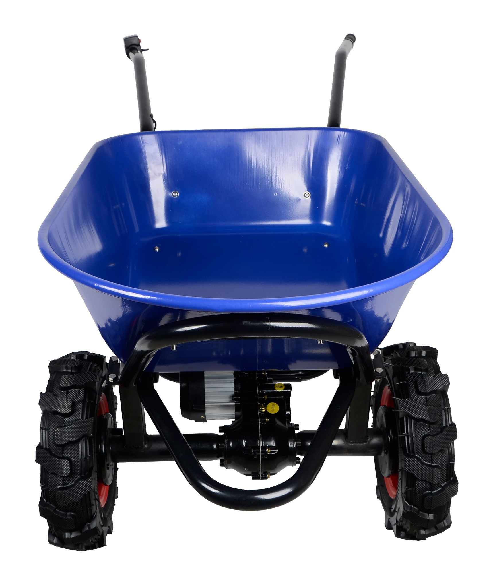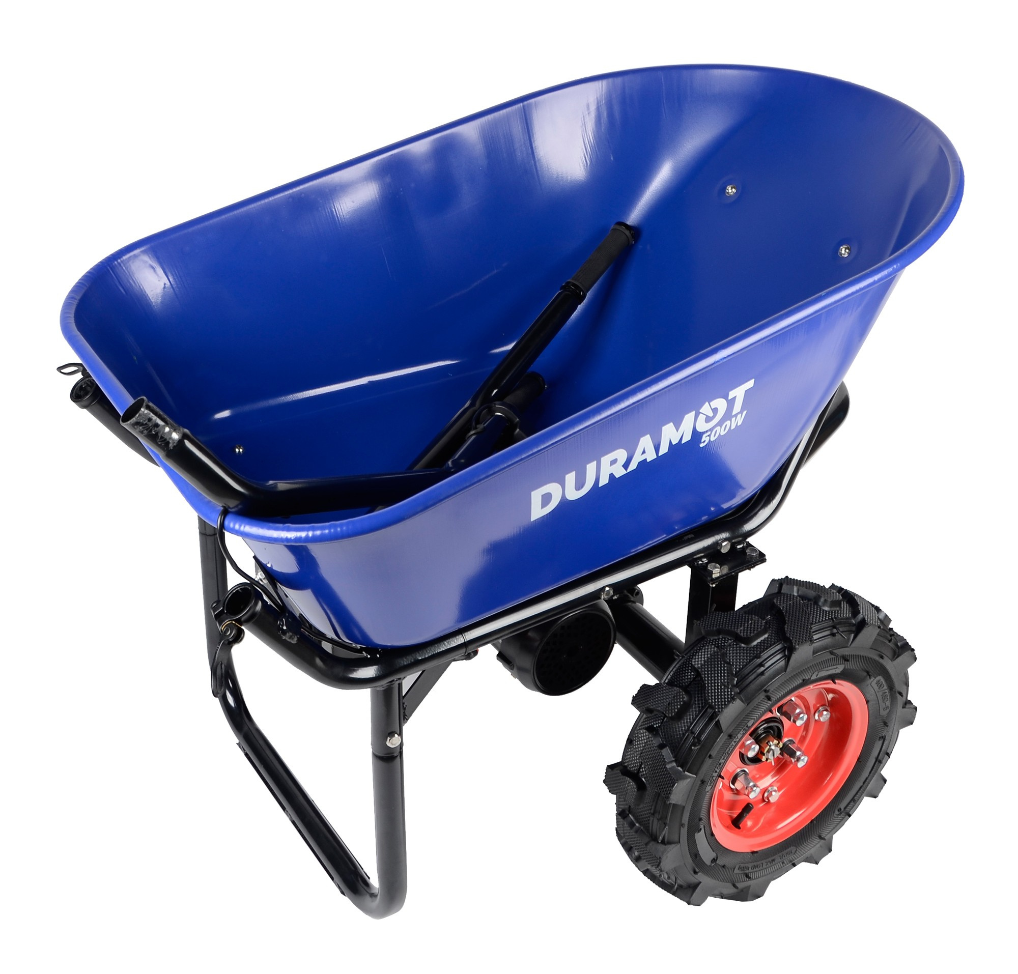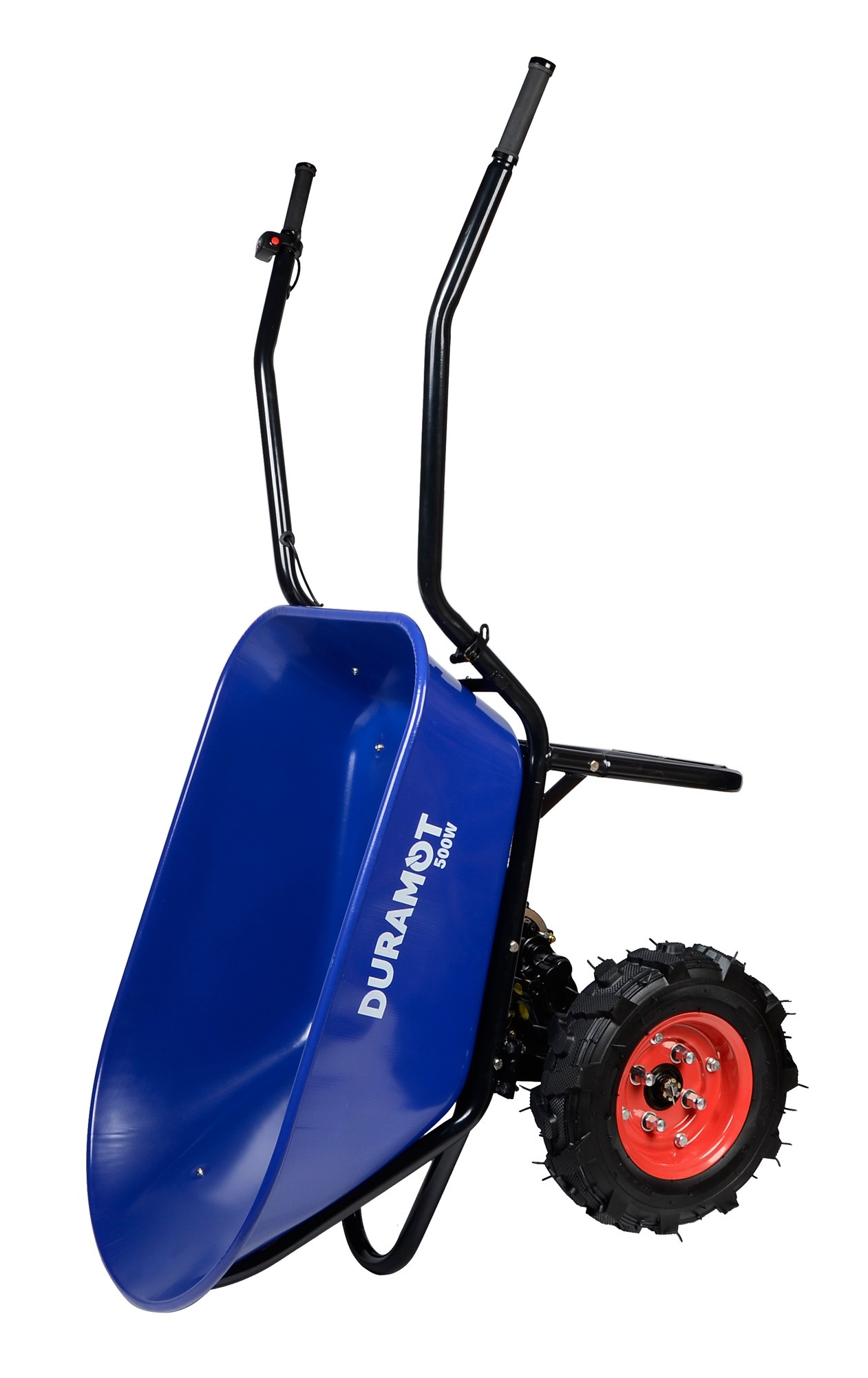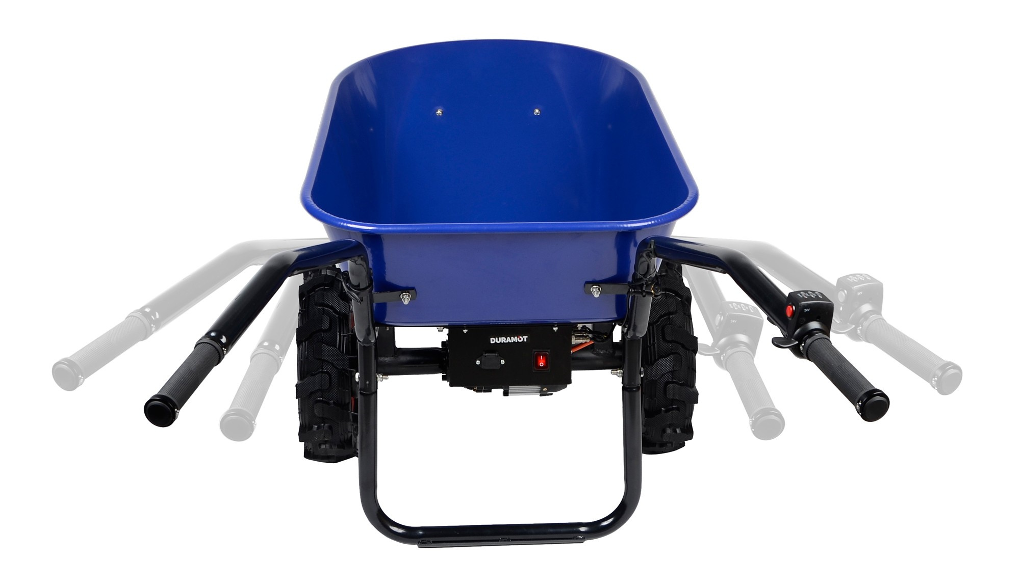 Otočením plynovej páčky smerom nadol aktivujete plynulú motorovú asistenciu. Stlačením červeného tlačidla na plynovom ovládači prepnete motor na spätný chod, čo využijete pri cúvaní alebo brzdení počas jazdy z kopca.Odolná práškovou farbou lakovaná kovová korba pojme až 100 litrov a odvezie až 260 kg.