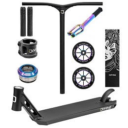 Hľadáš kolobežku, ktorá ťa nesklame v skateparku! Tento custom zostavený z prémiových dielov Divine je postavený presne pre teba. Ľahká, pevná a pripravená na ostré triky aj tvrdé dopady. Každá súčiastka bola vybraná pre maximálny výkon a štýl.