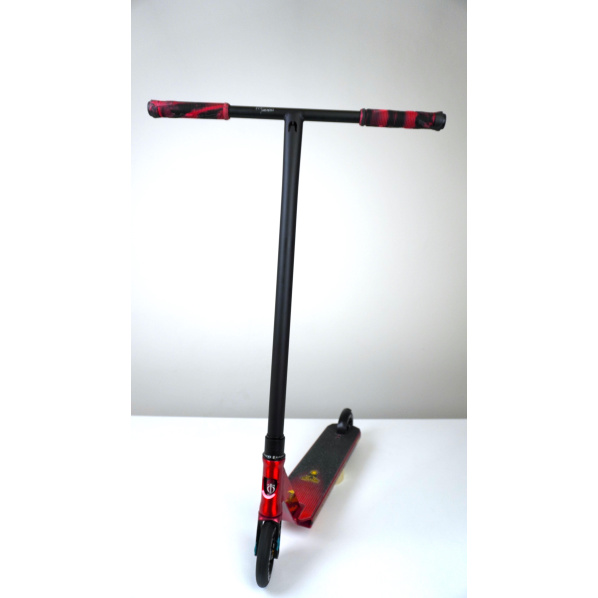 Tahle masaker koloběžka může být tvoje pokud jsi mírně pokročilý/pokročilejší jezdec, kterého baví jezdit ve skateparku. Hmotnost této koloběžky je pouhých 3700 gramů. Na koloběžce jsou kvalitní ocelová téčková řidítka Ethic Trianon s rozměry 670 x 560 mm s nasazenými Fasen Fast gripy. Koloběžka drží pohromadě díky dvoušroubové Ethic Valkyra objímce, IHC kompresnímu systému a Oath Shadow jednodílné hliníkové vidlici. Hladké otáčení zajišťuje náš Scootshop headset za který můžeme dát ruku do ohně. Na spodku koloběžky je signature Jon Marco Gaydos deska ve spojení s Lucky scooters o rozměrech 495 mm na délku, 114 mm na šířku a 345 mm jako footspace. Metal Core Radius kolečka jsou jako třešnička na dortu, zvolili jsme rozměr 120 x 24 mm aby to pořádně letělo.