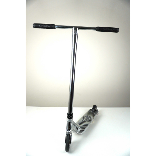 No, tento Build Up je niečo špeciálne! Táto kolobežka je určená pre stredne pokročilých/pokročilých jazdcov na ulicu aj do skateparku. Na kolobežke sú kvalitné oceľové riadidlá Ethic Tenacity s rozmermi 670x600 mm. Vitálne rukoväte sú na riadidlách. HIC bol zvolený ako kompresný systém, pretože sa považuje za spoľahlivý a robustný. Riadidlá sa uťahujú pomocou svorky Native Orca s dvoma skrutkami. Ako vidlicu sme vybrali Oath Shadow, ktorá je vhodná pre kolesá Oath Bermuda s priemerom 120 mm, šírkou gumy 26 mm a šírkou stredu 24 mm. Hladký chod kolobežky zabezpečuje naše hlavové zloženie Scootshop s kvalitnými priemyselnými ložiskami. Na spodnej časti kolobežky je čerešnička na torte: kamenná doska Triad Psychic s dĺžkou 520 mm , šírkou 120 mm a priestorom pre nohy 355 mm .