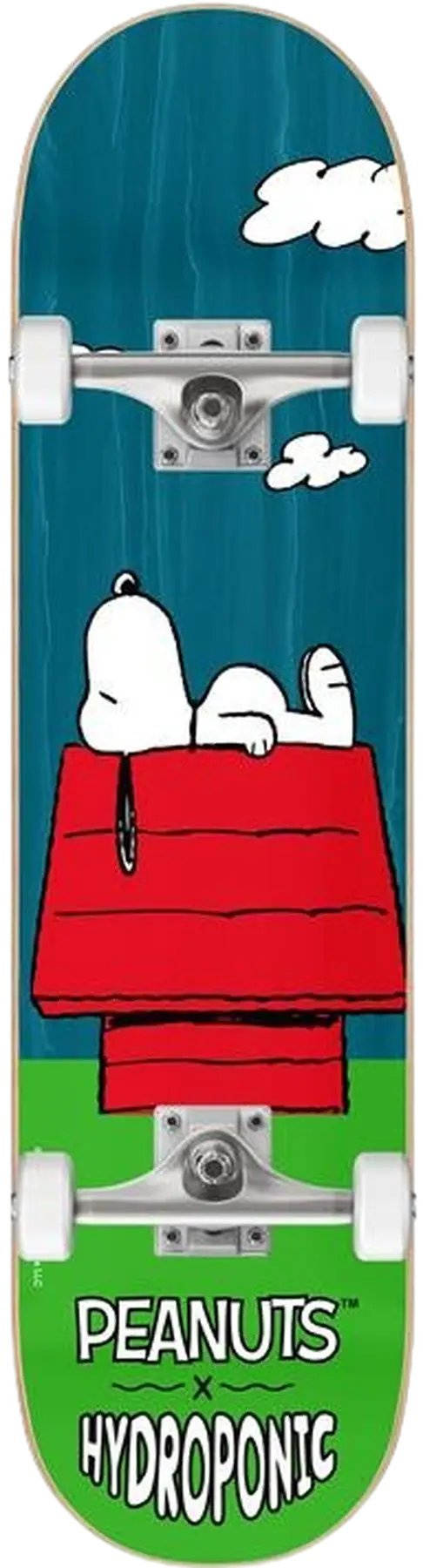 Kompletní skateboard Hydroponic x Peanuts kombinuje nadčasové umění s trvalým řemeslným zpracováním. Je vyroben z tvrdého javoru a jeho robustní design s dvojitým kicktailem zajišťuje přesné triky a flicks. Je vybaven 52mm kolečky s tvrdostí 100A, které slibují hladkou jízdu na různých površích. Standardní trucky kingpin zaručují stabilitu a kontrolu pro skateboardisty všech úrovní.