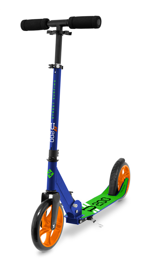 vLASTNOSTI: nášľapná doska dlhá 34 cm a široká 11 cm: zosilnený hliník s protišmykovou páskou výška nášľapnej dosky: len 8 cm - pre ľahké odrážanie stojan dvojbodová objímka kolesá: priemer 200 mm, 80A, PU - pre bezpečnú jazdu po malých nerovnostiach ložiská: ABEC 7 riadidlá: široké 33 cm, výškovo nastaviteľné s penovými rukoväťami (min. 70 cm, 1. poloha 80 cm, 2. pozícia 85 cm, 3. pozícia 90 cm) brzda: odolná oceľ konštrukcia: skladacia - ľahko sa prenáša a skladuje hmotnosť: 3,9 kg odporúčaný vek: 8+ max. nosnosť: 100 kg