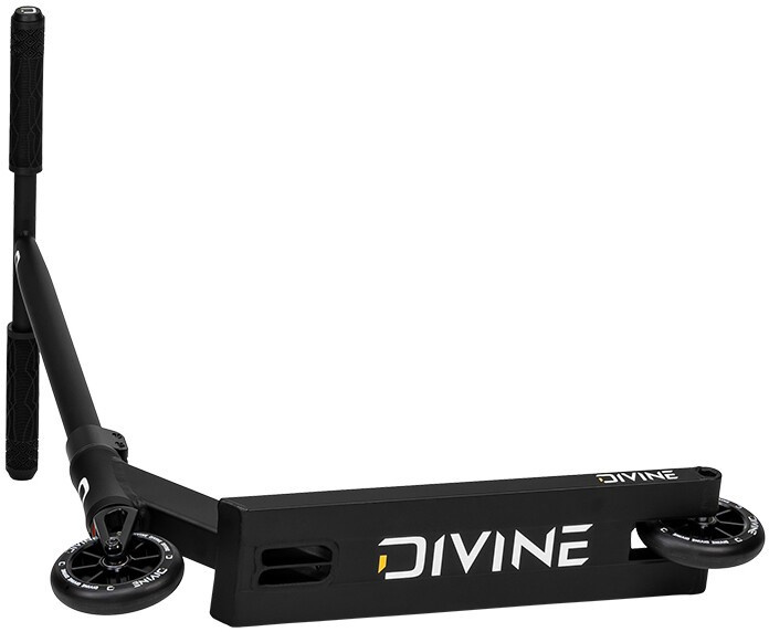 Divine Nyx XS je menšia verzia pouličného skútra. Táto freestylová kolobežka je určená pre menšie deti do výšky 130 cm, ktoré sa chcú zabaviť v skateparku aj na ulici. Celý skúter váži len 3,2 kg, takže sa s ním ľahko manipuluje. Kolobežka je vybavená oceľovými riadidlami v tvare T s mäkkými rukoväťami. Riadidlá drží pohromade svorka s dvoma skrutkami, ktorá spolu s kompresným systémom IHC a jednodielnou hliníkovou vidlicou drží skúter pohromade a zabezpečuje tichý chod. Kolobežka sa krásne točí vďaka priemyselným ložiskám, ktoré sú namontované v krku dosky. Doska je skvelá svojimi rozmermi, priestorom na nohy, štvorcovým koncom dosky a plastovou brzdou na nohy. Kolobežka je vybavená dvojicou 110 mm kolies s hliníkovými stredmi.