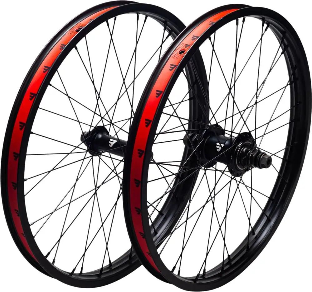Toto je sada kolies pre freestylové bicykle BMX. Je vyrobený s dvojstennými ráfikmi, vďaka čomu je koleso robustné a odolné.