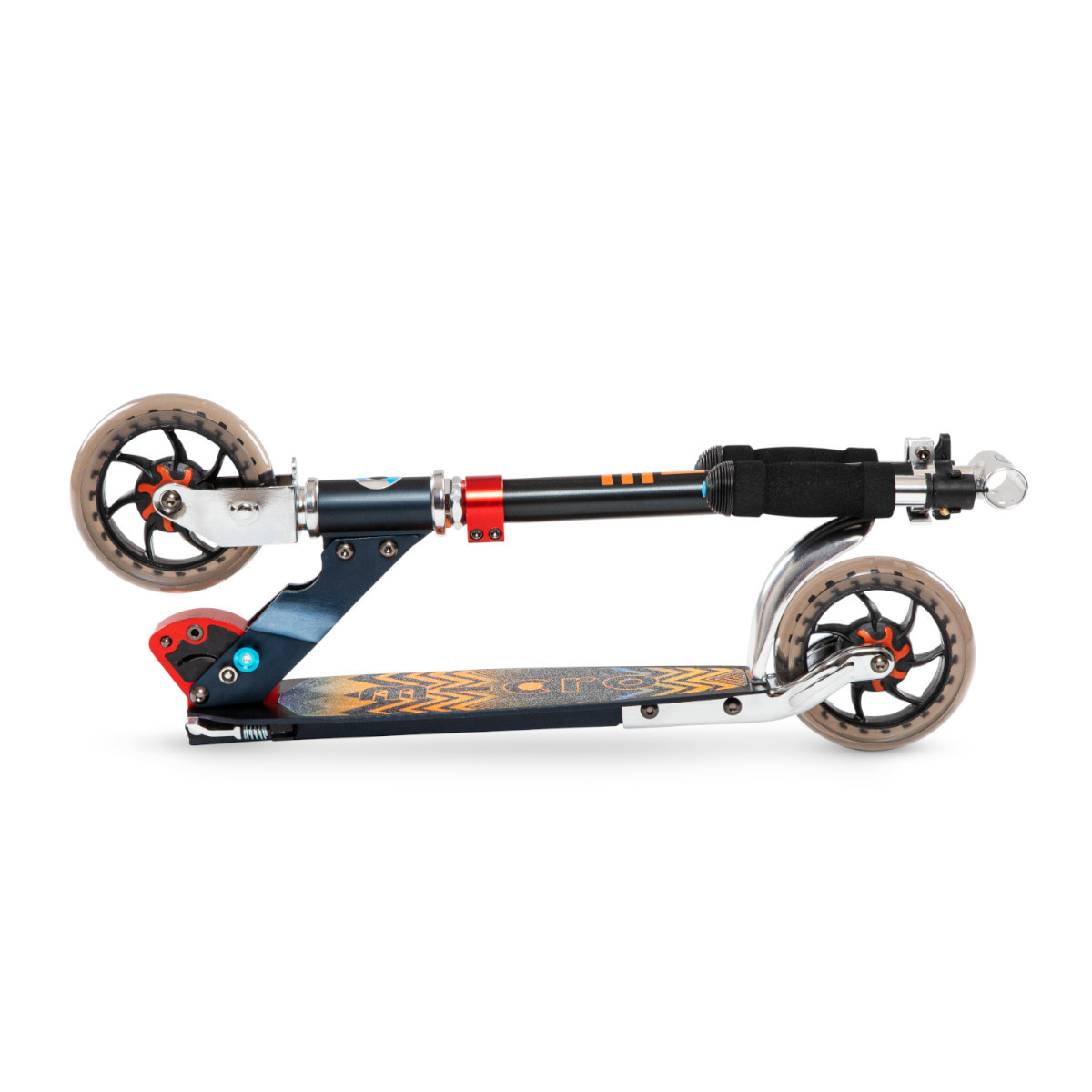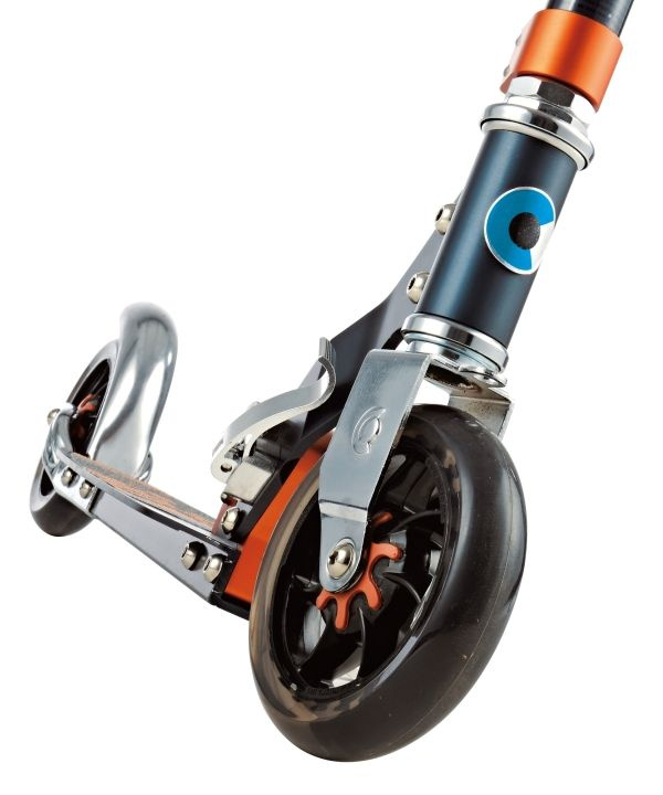od ostatných skladacích kolobežiek sa líši najmä kolesami, ktoré majú zabudovaný špeciálny absorpčný systém na tlmenie nerovností, napr. na nerovnom asfalte. Vďaka týmto kolieskam je kolobežka rýchla a pohodlná počas bežnej jazdy. Zároveň má v zloženom stave malé rozmery, ktoré oceníte všade tam, kde ho potrebujete prenášať alebo upratovať (v školskej skrini, na stole, pod sedadlom v autobuse alebo v práci pod stolom).