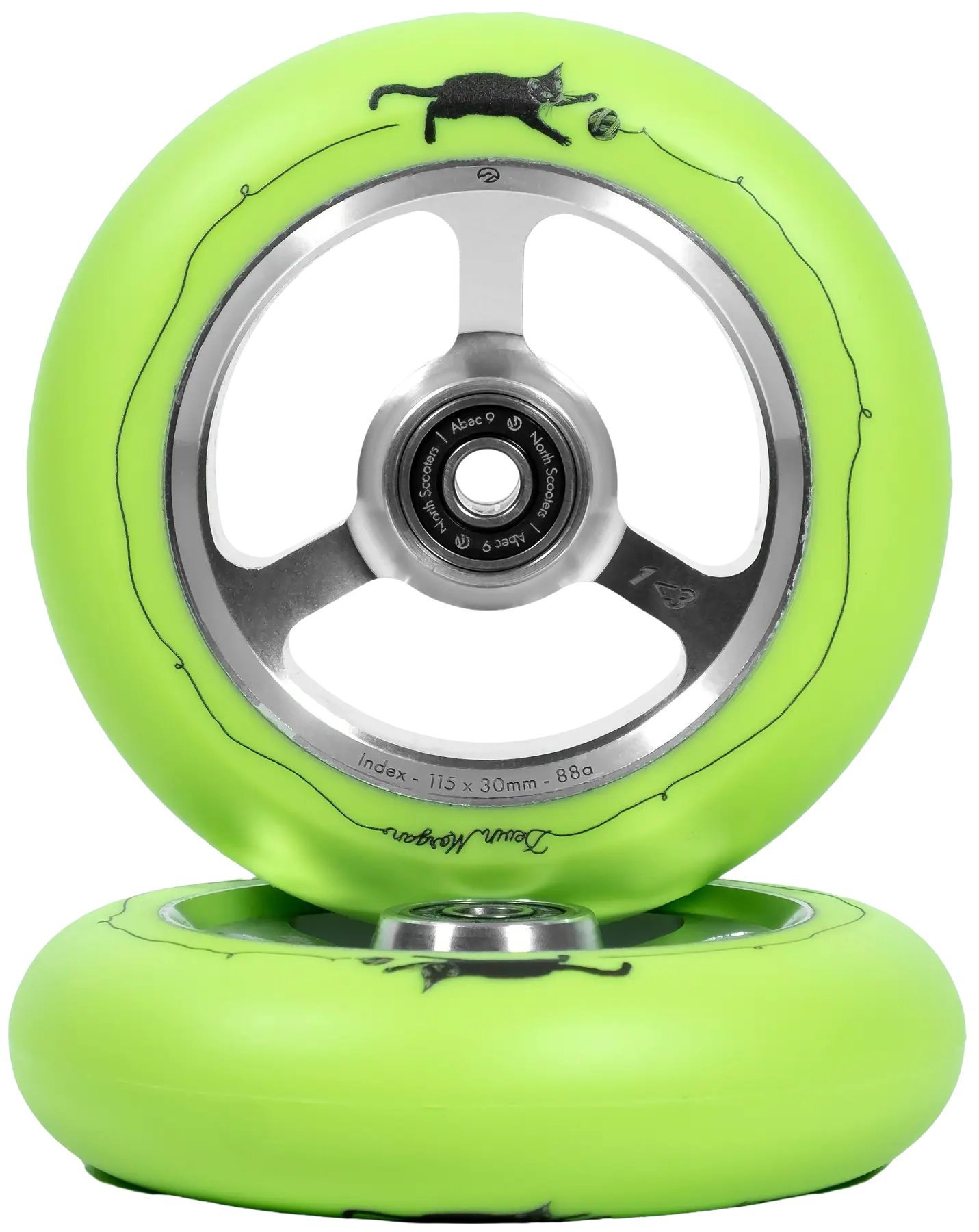 Představujeme sadu kol pro freestyle koloběžky North Devin Morgan Pro Wheels 2-balení, která je navržena pro výkon a styl. Tato kolečka jsou vyrobena z odolného uretanu a nabízejí optimální tvrdost 88A, která je ideální pro hladkou jízdu a záludné manévry. Každé kolo je vybaveno robustním spoked core vyrobeným z vysoce kvalitního hliníku 7075-T6 a je testováno a zdokonaleno pro přesnost s předinstalovanými ložisky ABEC-9. Jedinečná grafika inspirovaná Devinovými dvěma rošťáckými kočkami dodává osobité provedení, zatímco zářivě zelená barva odráží jeho tvůrčí vášeň. Pozvedněte svůj zážitek z jízdy na koloběžce díky této odborně zpracované sadě.