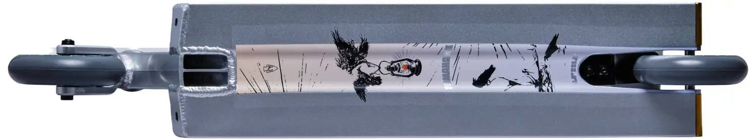 Čo tak poriadna freestylová kolobežka na ulicu, na ktorej si však môžete dobre zajazdiť aj v skateparku? North Tomahawk je pre vás! Vynikajúce kolieska s priemerom 115 mm a šírkou 30 mm. Vďaka tejto šírke je jazda stabilnejšia a rýchlejšia. SCS dodáva väčšiu pevnosť a nepružnosť. Vynikajúce oceľové riadidlá v tvare T neurazia žiadneho jazdca. Rozpierky pre kolesá so šírkou 24 mm sú súčasťou balenia.
