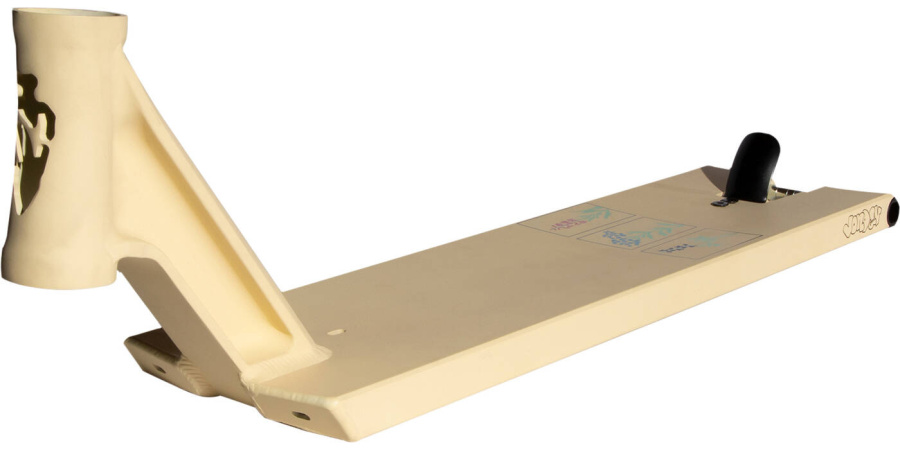 Nová generace Tilt Theory desek je tu! Theory je jedna z nejlepších street desek. Má hranatý tvar a tzv. "Crook Nook" v přední části desky. Díky tomu vám půjdou snadněji nose griny. Deska nemá grindraily, díky tomu se vám bude daleko snadněji jezdit na trubkách. Deska má integrovanou brzdičku, svařovanou. Tzv. jezdíte breakless. Do desky se vlezou kolečka  120 mm se šířkou 24 mm i 30 mm! Krk desky je dvoudílný a pro integroavané headsety.
