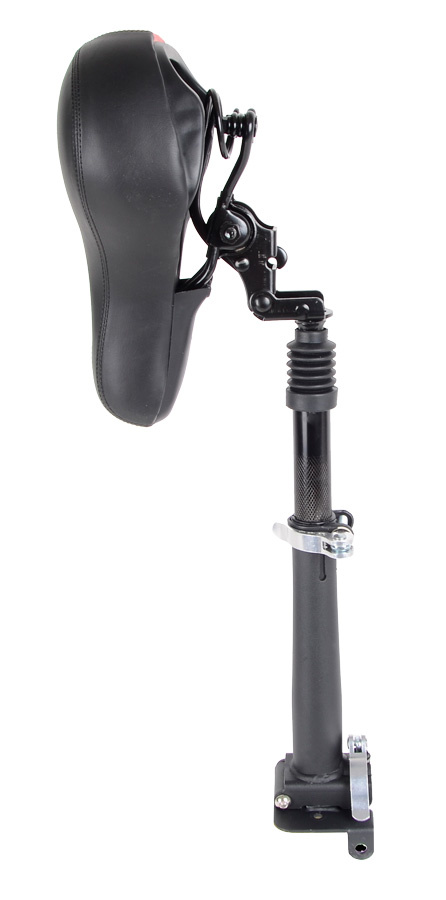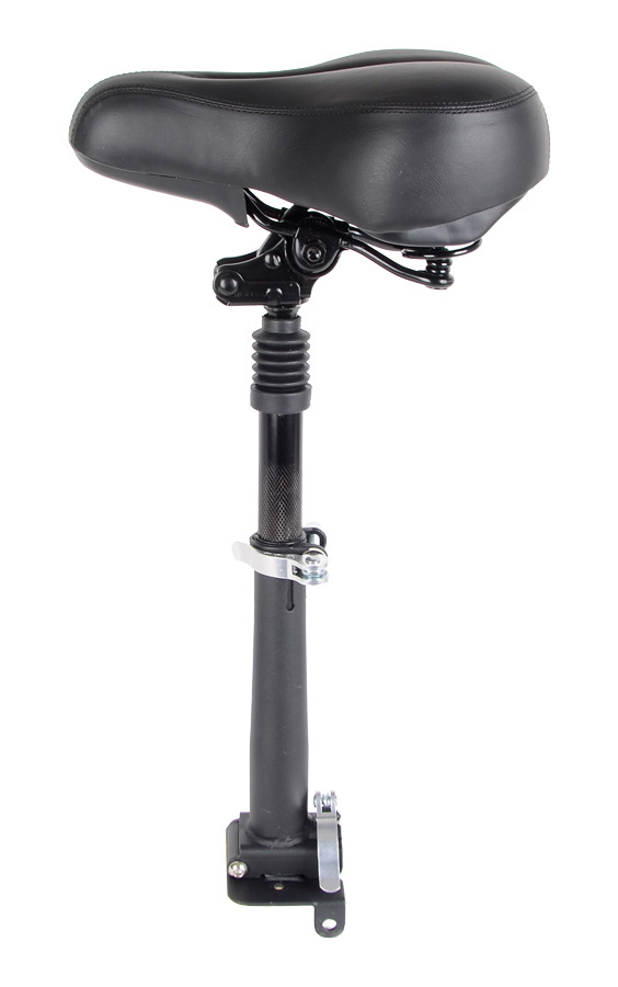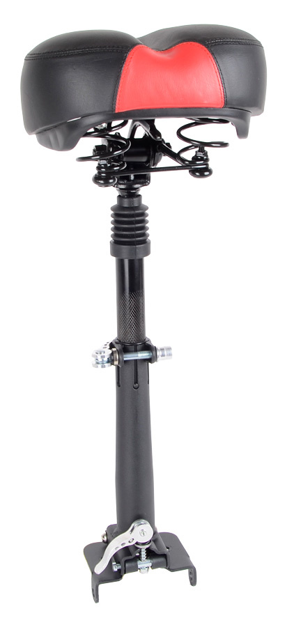 aj namontované sedlo sa dá zložiť spolu s kolobežkou, takže vás neobmedzuje ani pri prenášaní kolobežky. Sedlo je viacnásobne odpružené (polstrované sedlo a sedlovka), aby bola jazda čo najpohodlnejšia.