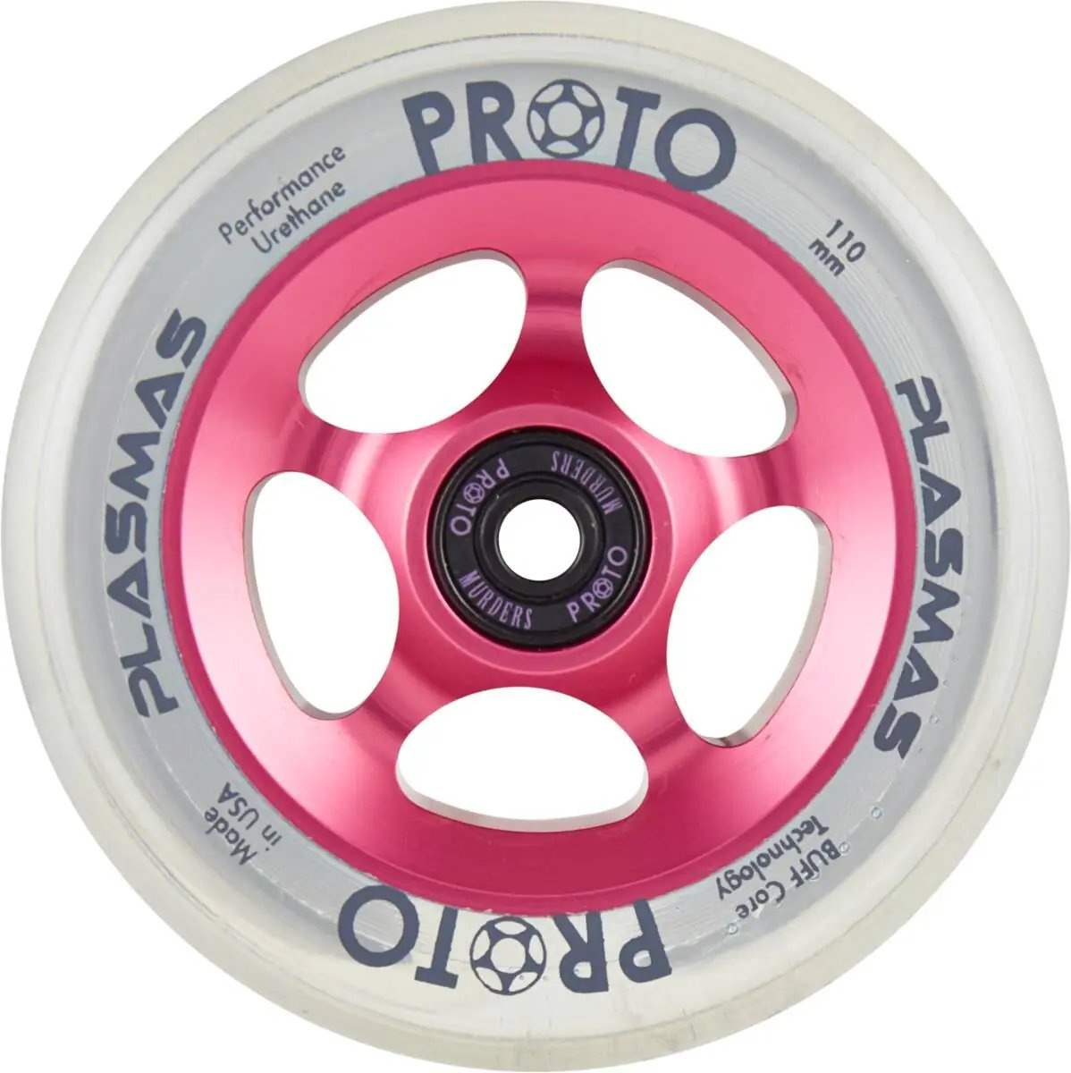 Mäkšie, hladšie a rýchlejšie. Takto by sme formulovali kolesá Plasma od legendárnej značky PROTO. Kolesá sú vyrobené v USA. Vďaka technológii jadra BUFF, ktorá pomáha absorbovať nárazy, znižuje možnosť odlepenia kolies a zvyšuje pohodlie pri samotnej jazde. Stred kolesa je hliníkový. V priestore pre ložiská sú tiež menšie otvory, aby sa ložiská dali ľahko vybrať.