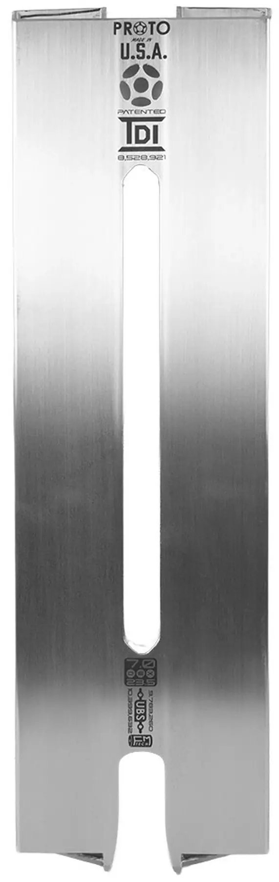 Proto Sol-Lite 7.0" TDI deska pro freestyle koloběžku je mistrovskou kombinací pevnosti a výkonu, která je ideální pro pokročilé a profesionální jezdce. Tato deska, která byla odborně vyrobená v továrně PROTO Factory ve městě Vista v Kalifornii, představuje vrchol řady TDI DEX. Její velkorysá šířka 7,0", vyrobená z robustního hliníku T6, poskytuje rozsáhlou platformu pro jistou jízdu. Je k dispozici v různých délkách a vyznačuje se jedinečnými detaily, jako jsou zapuštěné výstupky a hlubší Drop-Top hrany pro větší stabilitu a kontrolu. Surový kartáčovaný povrch a gravírování dodávají desce nádech elegance a povyšují její vzhled i výkon na bezkonkurenční úroveň.