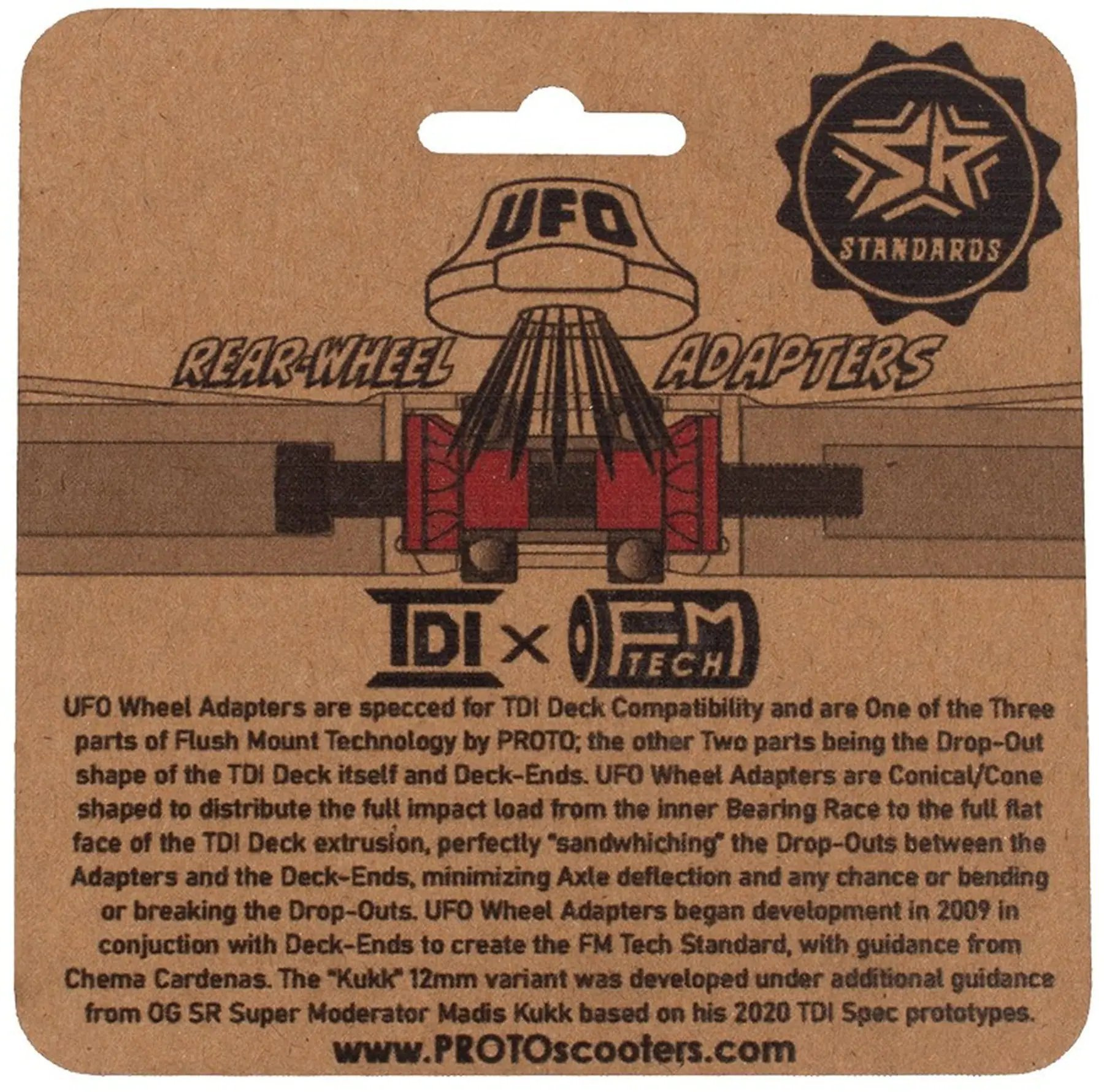 Sada 2-balení adaptérů na zadní kola Proto UFO umožňuje kompatibilitu s jakýmikoli koly na vaší PROTO TDI desce. Tyto adaptéry jsou vhodné pro kola o šířce 24 mm a 30 mm, stejně jako pro Osičky o průměru 8 mm a 12 mm, a zajišťují dokonalé uchycení. S těmito adaptéry lze kola vyžadující 12mm Osičky snadno přizpůsobit standardním 8mm Osičkám bez dalších dílů nebo úprav.