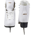 Klasické biele krasokorčule od talianskej značky Roces s čistým retro vzhľadom a dizajnom. Vysoký podpätok a čepeľ krasokorčule z uhlíkovej ocele s hrotom na špičke. Zvršok a jazyk sú vyrobené z PVC.