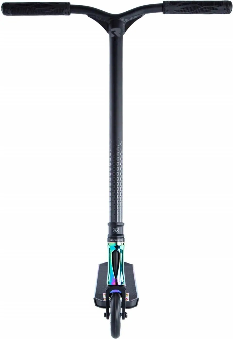 Nový a ešte lepší skúter Root Industries Invictus. Kolobežka je určená na jazdu v skateparku a pre stredne pokročilých jazdcov. Celková hmotnosť skútra je len 3350 g. Celková výška skútra je 850 mm. Kolobežka vyniká ľahkou hliníkovou doskou. Doska je z jedného kusu a jej koniec je skosený. V doske sú otvory na odľahčenie. Skúter má kompresný systém IHC. Kolobežka má hliníkové riadidlá v tvare písmena Y. Rozmery riadidiel sú 610 mm na výšku a 580 mm na šírku. Kolobežka je vybavená dvojicou slávnych koliesok Root Industries Honeycore 110 mm. A na konci dosky je plastový flex blatník brzda.