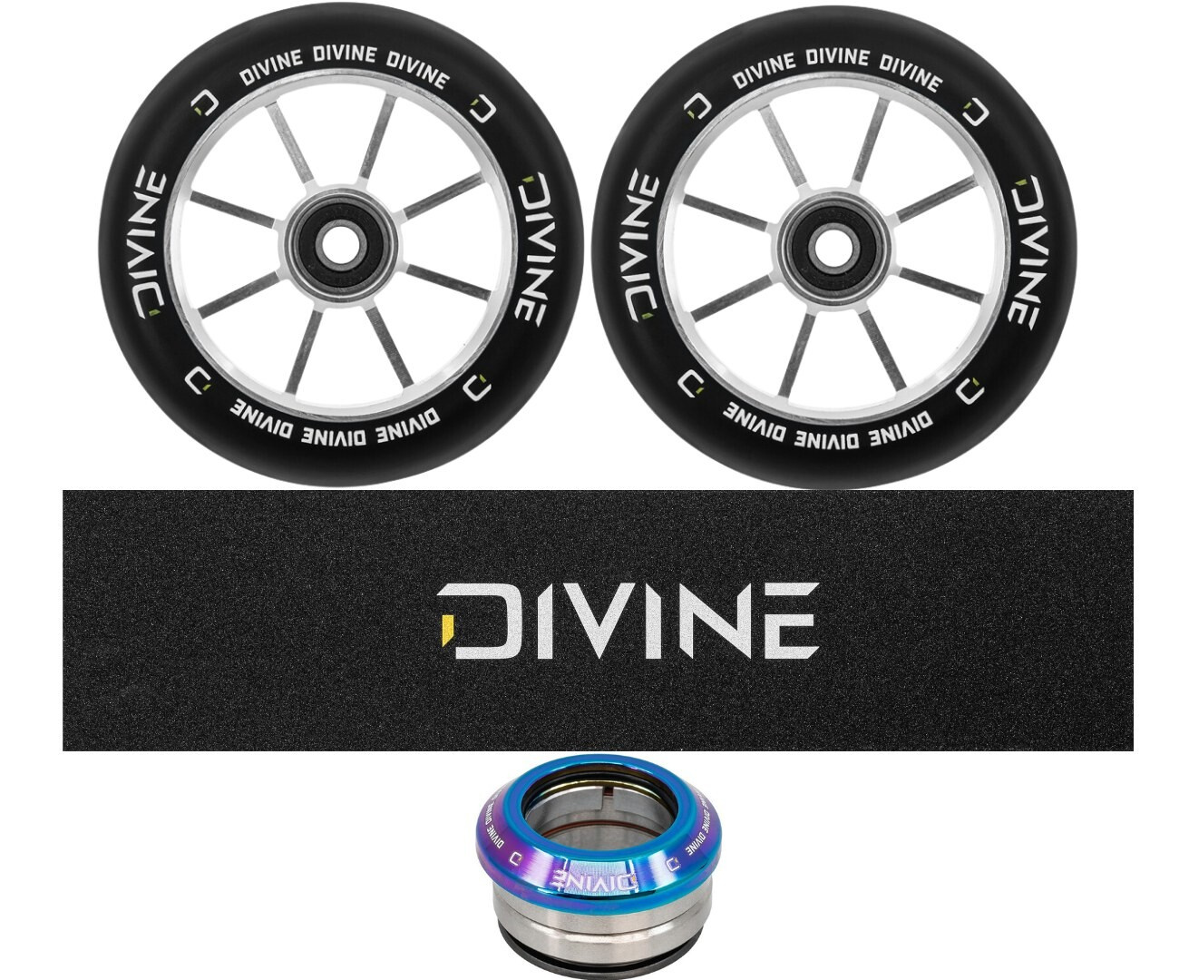 Výborné 110 mm kolieska s hliníkovým stredom od novej českej značky Divine. Šírka kolieska je štandardná 24 mm. Ložiská ABEC 11 zaručujú skvelú rýchlosť.