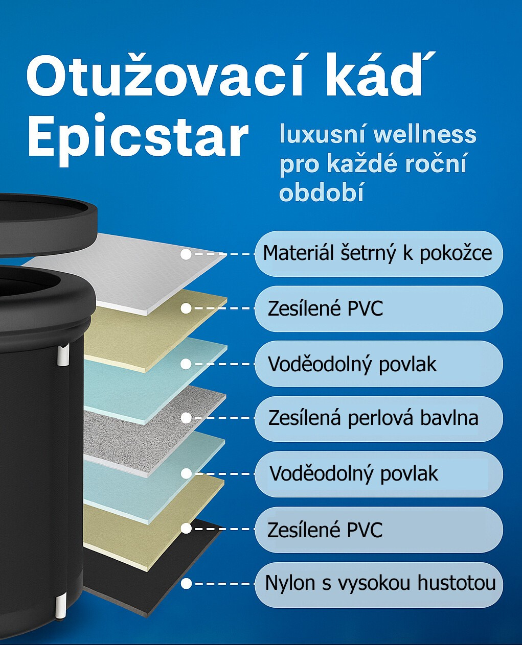 Otužovací sud Epicstar je navrhnutý pre všetkých, ktorí chcú naplno využiť benefity studenej (aj teplej) kúpele. Podporte regeneráciu po športe, posilnite imunitu a zvýšte odolnosť voči stresu – doma na záhrade, na chate alebo na cestách. Sud zložíte počas pár minút, zbalíte do priloženého vaku a vezmete so sebou, kam potrebujete.