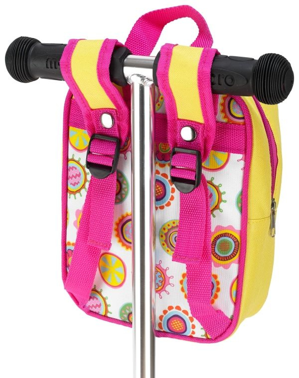 Perfektní taška pro mini dobrodružství! Taška, která je izolovaná, pracuje skvěle jako obědový vak. S kapacitou 2,3 litru taška udrží vaše nápoje a potraviny v pohodě. Zabalte si nápoj, občerstvení a oblíbenou hračku a připravte se na výlet s touto krásnou taškou od společnosti Micro. Speciálně navržená pro dětské koloběžky a jízdní kola, připevní se cvoky bezpečně k řidítkám nebo může být použita jako batoh. Plně nepromokavá.