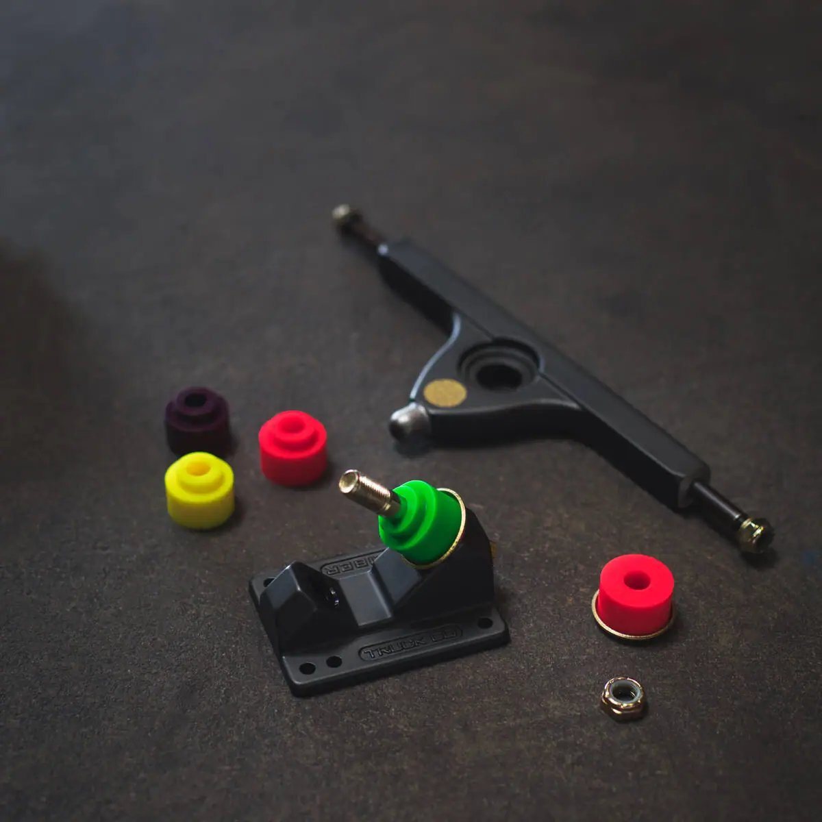 Kúpte si sadu náhradných puzdier pre svoj longboard Caliber, ktoré sú tvarom a funkčnosťou prispôsobené na mieru. Vyplnením medzier medzi závesom a čapom odstráni bočnú vôľu a vaša jazda bude citlivejšia a s priamejším pocitom pri zatáčaní.